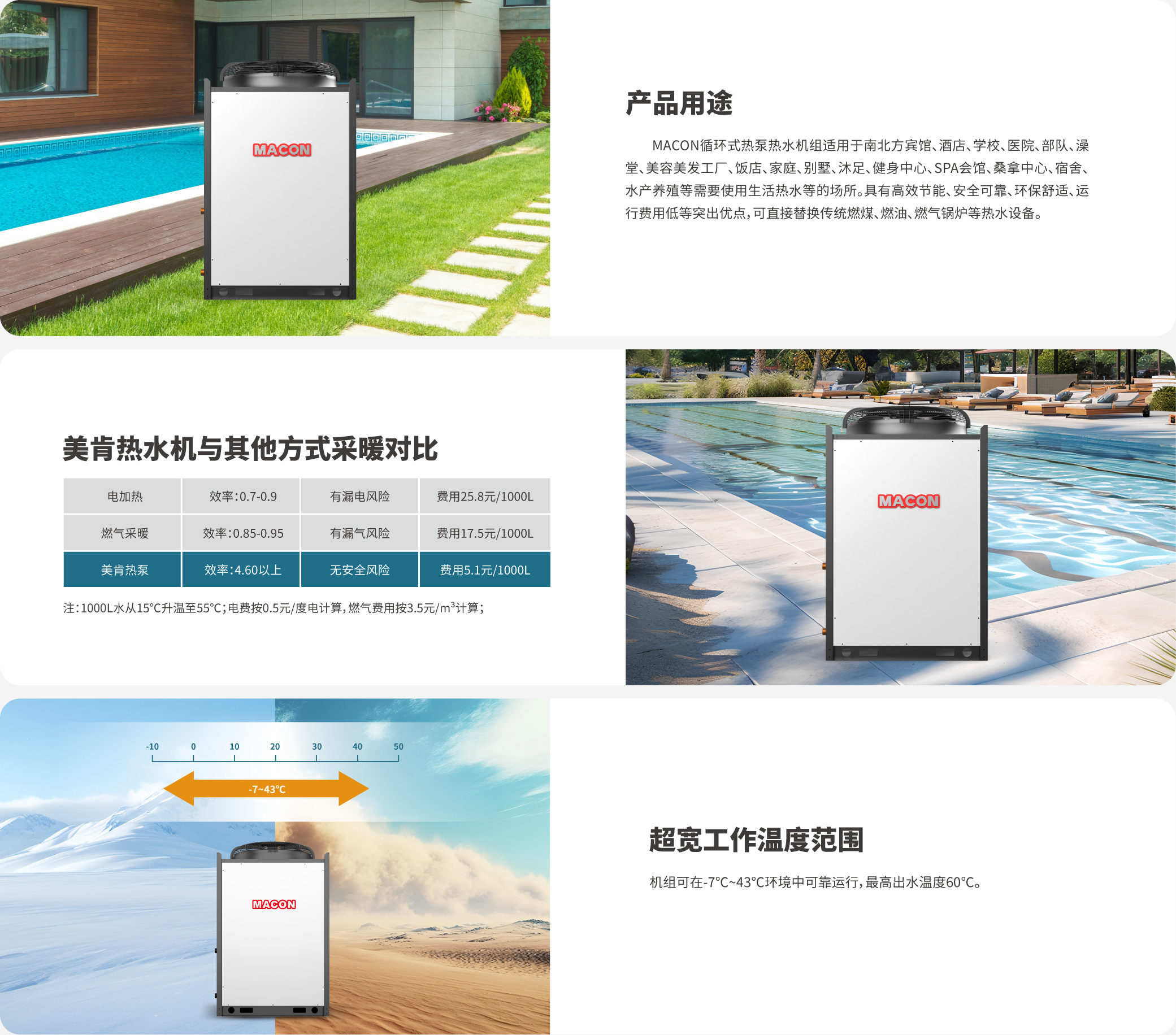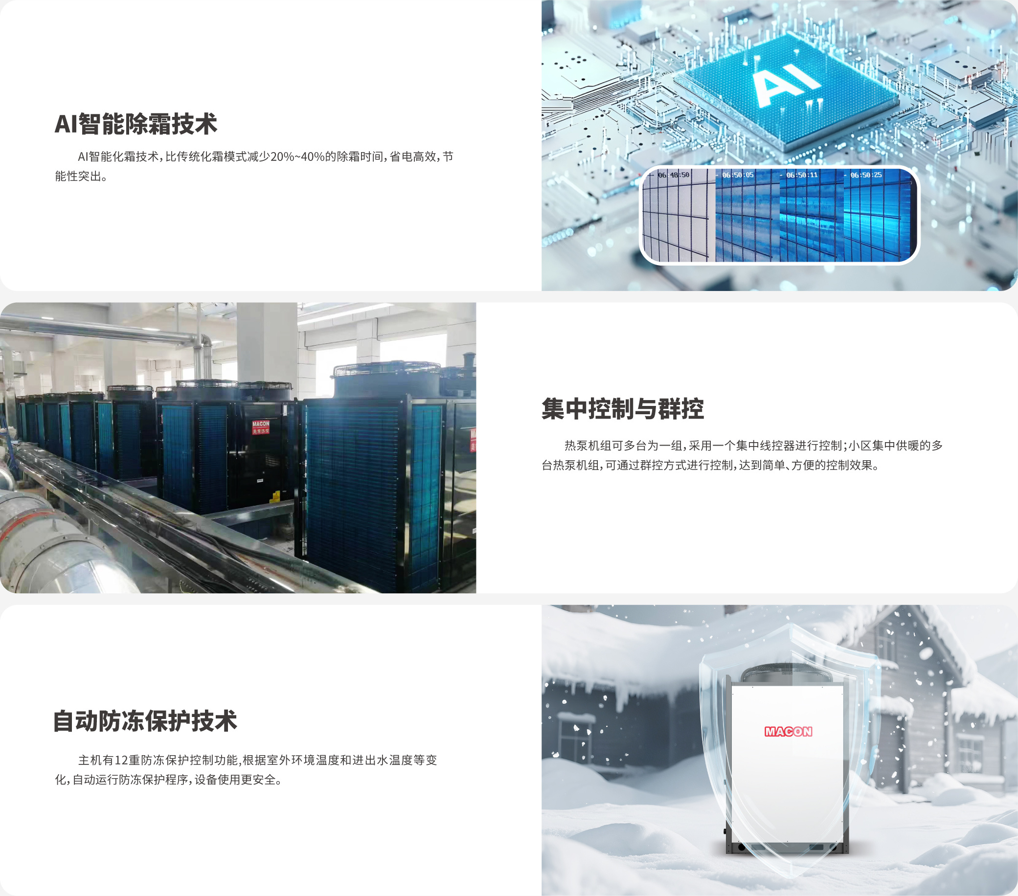 运行环境温度:-30~43℃、最高出水温度60℃、AI智能除霜、